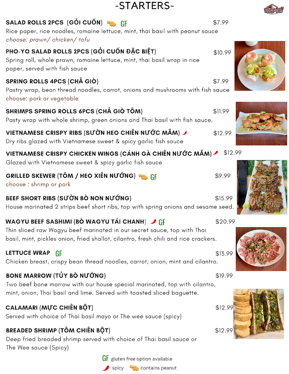 Experience making your own rice paper rolls! Served with lettuce, cucumber, Thai basil, mint, pickles carrots and onions, rice paper, vermicelli noodle and our house-made fish sauce. Contains peanuts.