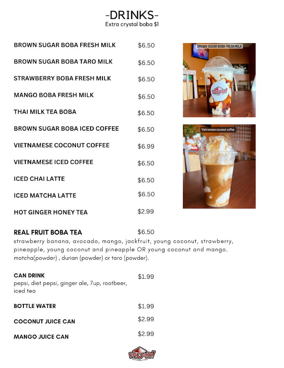 Comes with brown sugar crystal boba. Shake made with your choice of real fruit.